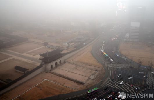[서울=뉴스핌] 이길동 기자 = 16일 오전  서울 종로구 광화문앞 도로가 미세먼지와 짙은 안개로 덮여 있다. 기상청은  이날 수도권과 강원 내륙·산지 등에는 가시거리 200m 미만, 그 밖의 경상권 내륙에는 가시거리 1㎞ 미만의 안개가 낄 것으로, 미세먼지 농도는 수도권·강원 영동·충청권·광주·전북·대구는 ‘나쁨’, 그 밖의 권역은 ‘보통’으로 예보했다.2026.01.16 gdlee@newspim.com