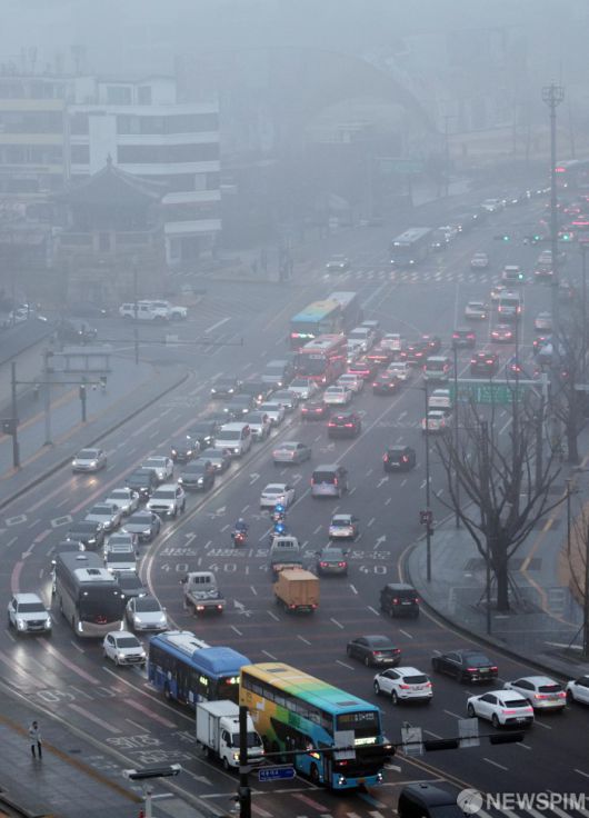 [서울=뉴스핌] 이길동 기자 = 16일 오전 서울 종로구 동십자각 사거리가 미세먼지와 짙은 안개로 덮여 있다. 기상청은 이날 수도권과 강원 내륙·산지 등에는 가시거리 200m 미만, 그 밖의 경상권 내륙에는 가시거리 1㎞ 미만의 안개가 낄 것으로, 미세먼지 농도는 수도권·강원 영동·충청권·광주·전북·대구는 ‘나쁨’, 그 밖의 권역은 ‘보통’으로 예보했다.2026.01.16 gdlee@newspim.com |