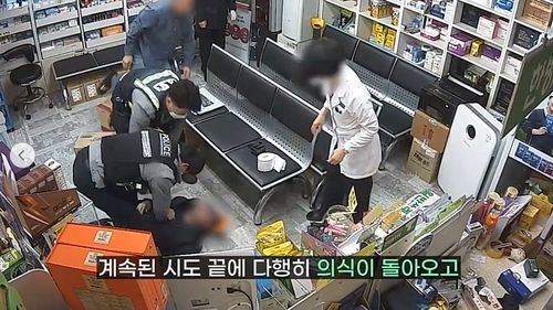 경찰관은 곧바로 약국으로 뛰어가 쓰러진 A씨의 상태를 확인한 뒤 곧바로 심폐소생술을 실시했다.