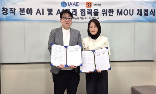 국제인공지능윤리협회(IAAE, 이사장 전창배)와 AI 창작 테크 기업 데이븐AI(DavenAI, 대표 정우균)가 AI 기술 저변 확대와 AI 창작자 생태계 조성을 위한 협력 사업에 본격 나선다. 양 기관은 ‘창작 분야 AI 및 AI윤리 협력을 위한 업무협약(MOU)'을 체결했다고 15일 밝혔다.