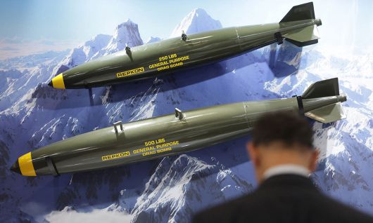 한 관람객이 전투기에 탑재하는 정밀유도폭탄이 전시되어 있는 모습을 보고 있다. 세계일보 자료사진 |