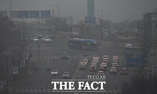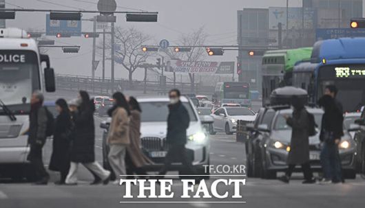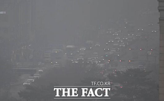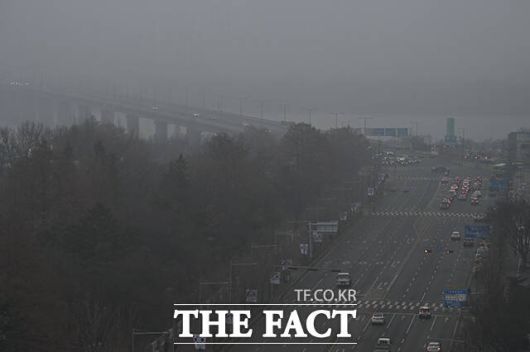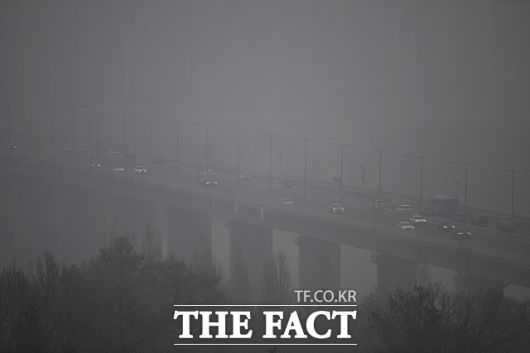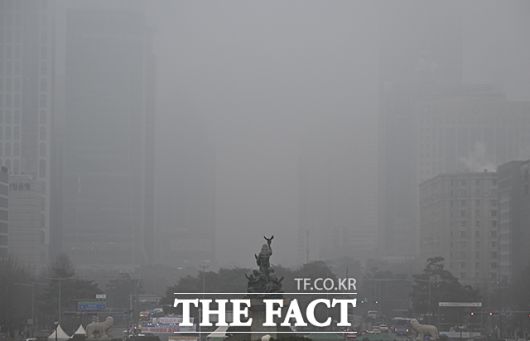 [더팩트ㅣ박헌우 기자] 서울의 미세먼지 농도가 '나쁨' 수준을 보인 16일 오전 서울 여의도 도심이 뿌옇게 보이고 있다.
