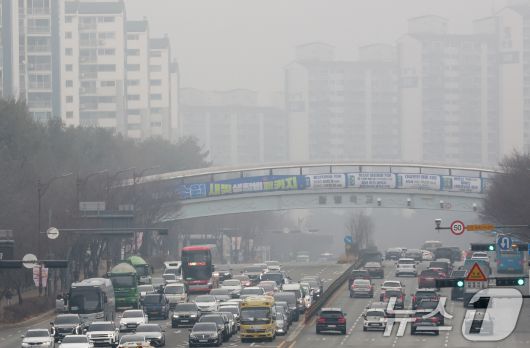 (수원=뉴스1) 김영운 기자 = 전국 곳곳이 짙은 안개와 먼지가 뒤엉키면서 초미세먼지농도가 '나쁨' 수준을 보인 16일 경기 수원시 영통구 일대가 안개와 미세먼지로 인해 뿌연 모습을 보이고 있다. 2026.1.16/뉴스1