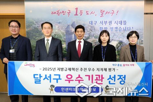 (대구=국제뉴스) 백운용 기자 = 이태훈 달서구청장은 "규제개혁위원회와 토론회를 활성화해 기업과 주민의 목소리를 직접 반영하는 현장 밀착형 규제 개선에 힘써 온결과 행정안전부가 주관한 '2025년 지방규제혁신 추진 성과평가'에서 우수 지자체로 선정돼 재정 인센티브인 특별교부세 1억 원을 확보했다"고 15일 말했다.
