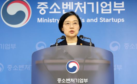 한성숙 중소벤처기업부 장관이 17일 오후 세종시 정부세종청사 중소벤처기업부 브리핑실에서 2026년 업무계획 내용을 설명하고 있다./뉴스1 |