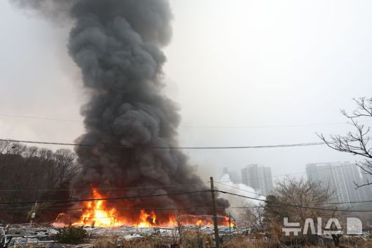 [서울=뉴시스] 최진석 기자 = 16일 화재가 발생한 서울 개포동 구룡마을에 불길이 보이고 있다. 2026.01.16. myjs@newsis.com |