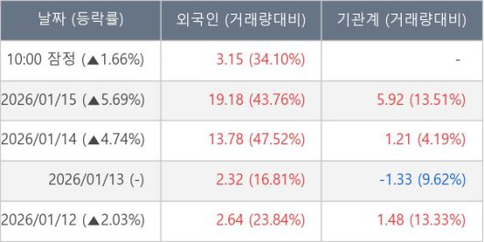 [표] 외국인ㆍ기관 순매매량 (단위 만주)