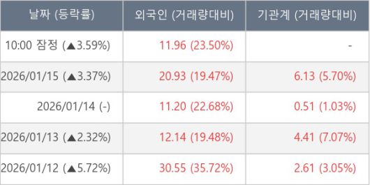 [표] 외국인ㆍ기관 순매매량 (단위 만주)