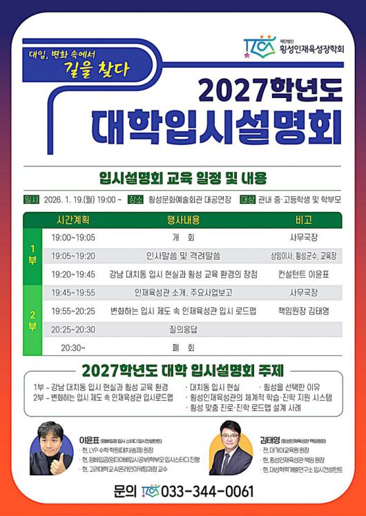 [횡성=뉴시스] 대학입시설명회 안내문. (사진=횡성인재육성장학회 제공) 2026.01.16. photo@newsis.com *재판매 및 DB 금지 |