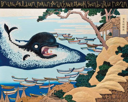 젊은 컬렉터들에 인기가 높은 우국원의 2024년 작품 ‘꿋꿋한 주석 병정(The Steadfast Tin Soldier)’도 추정가 2억~2억 6000만 원에 새 주인을 찾는다. 안데르센의 동화를 모티브로 삼은 작품은 거대한 고래와 파도라는 위기 속에서도 유희를 즐기는 인물들을 통해 작가 특유의 블랙 유머를 보여 준다.