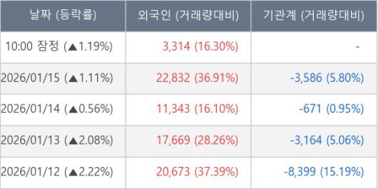 [표] 외국인ㆍ기관 순매매량 (단위 주)
