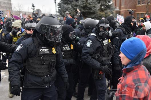 15일(현지시간) 미국 미네소타주 미니애폴리스에서 세관국경보호국(CBP) 요원들이 이민세관단속국(ICE) 반대 집회 중인 시위대와 대치하고 있다. 2026.01.15. ⓒ AFP=뉴스1 ⓒ News1 윤다정 기자 |