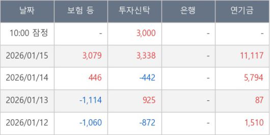 [표] 주요 기관별 순매매량 (단위 주)