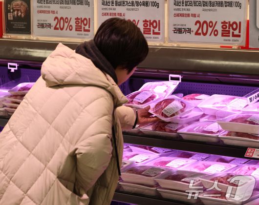 지난 9일 서울의 한 대형마트 돈육 코너에서 시민들이 장을 보고 있다. /뉴스1 ⓒ News1 구윤성 기자 |