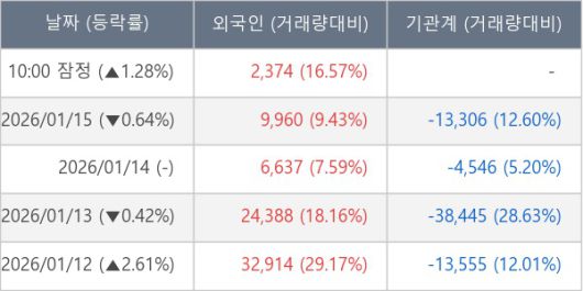 [표] 외국인ㆍ기관 순매매량 (단위 주)