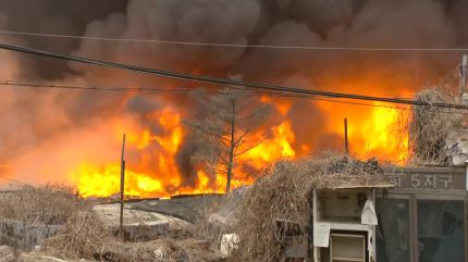 조금 전 인근 고층 건물에서 촬영된 영상인데요, 마을 곳곳에 불길이 일렁이고 매캐한 연기가 뿜어져 나오는 모습입니다.