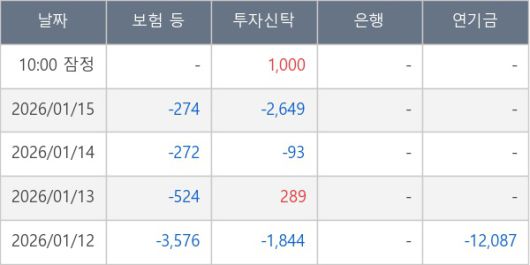 ※ 장중 매매동향은 잠정치이므로 실제 매매동향과 차이가 발생할수 있음
