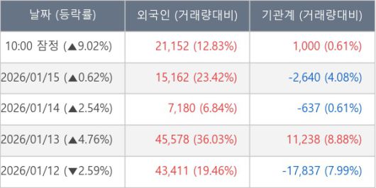 ※ 사모펀드 등 일부 기관의 순매매량은 표시되지 않음