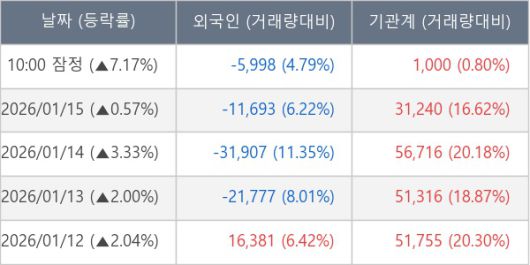 ※ 사모펀드 등 일부 기관의 순매매량은 표시되지 않음