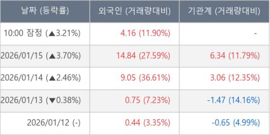 [표] 외국인ㆍ기관 순매매량 (단위 만주)