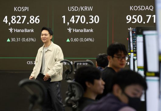 코스피는 간밤 반도체를 중심으로 미국 증시 반등에 힘입어 개장과 동시에 4800선을 넘어섰다. 전장 대비 23.11(0.48%) 오른 4820.66으로 출발해 장중 사상 최고가(4797.55)를 또다시 경신했다. 이날 오전 10시 기준 전날보다 36.90(0.77%) 상승한 4834.45에 거래되고 있다. 코스피는 11거래일 연속 오름세로 2019년 9월 4∼24일(13거래일), 2006년 3월23일∼4월7일(12거래일) 다음으로 최장 기간 상승세다. 같은 시각 코스닥 지수는 0.67포인트(0.07%) 떨어진 950.49다.