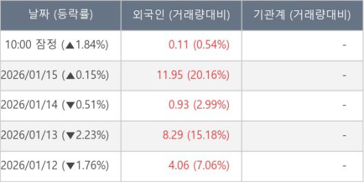 [표] 외국인ㆍ기관 순매매량 (단위 만주)