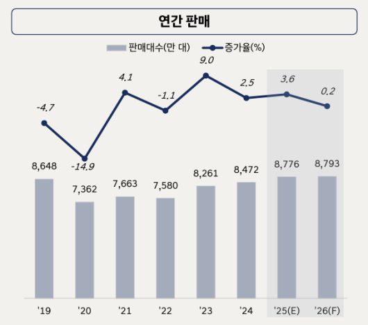 미국 시장은 품목 관세 부과에 따른 차량 가격과 보험료 상승으로 3년 만에 1500만대 수준으로 위축되고, 중국은 소비심리 둔화와 신에너지차(NEV) 혜택 축소 등으로 인해 보합세를 보일 전망이다.