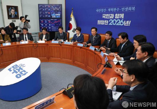 [서울=뉴스핌] 윤창빈 기자 = 정청래 더불어민주당 대표가 16일 서울 여의도 국회에서 열린 최고위원회의에서 모두발언을 하고 있다. 2026.01.16 pangbin@newspim.com