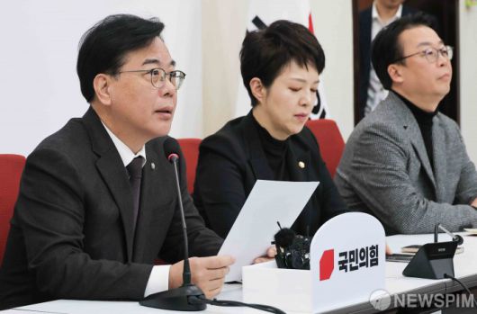 [서울=뉴스핌] 윤창빈 기자 = 송언석 국민의힘 원내대표가 16일 서울 여의도 국회에서 현안 관련 기자간담회를 하고 있다. 2026.01.16 pangbin@newspim.com