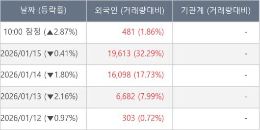 [표] 외국인ㆍ기관 순매매량 (단위 주)