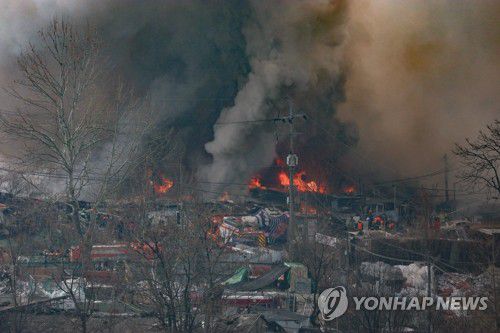 (서울=연합뉴스) 김성민 기자 = 16일 서울 강남구 개포동 구룡마을 4지구 화재현장에 불길과 연기가 치솟고 있다. 소방당국은 대응 1단계를 2단계로 격상하고 추가 인력을 투입 중이다. 2026.1.16