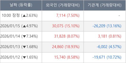 [표] 외국인ㆍ기관 순매매량 (단위 주)