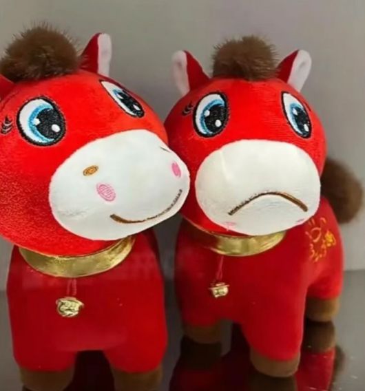 16일 중국 현지 매체 중신징웨이에 따르면 올해 ‘병오년’, 이른바 ‘붉은 말의 해’가 되면서 중국에서 말 인형이 인기를 끌고 있다. 그중에서도 유독 눈길을 끄는 제품은 웃는 얼굴이 아닌, 금방이라도 울 것 같은 표정의 ‘우는 말’ 인형이다.