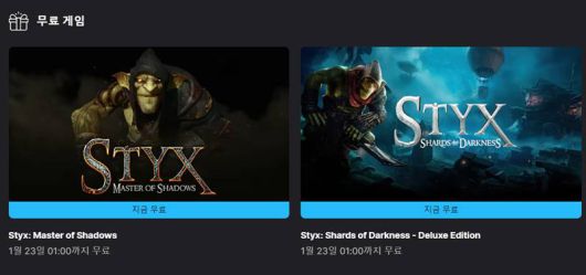 이번 무료 배포 게임은 사이아나이드 스튜디오가 개발한 '스틱스: 마스터 오브 섀도(Styx: Master of Shadows)'와 그 후속작 '스틱스: 샤드 오브 다크니스(Styx: Shards of Darkness)'이다.