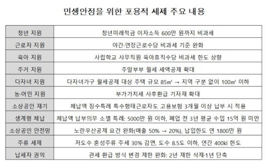 총급여 7500만 원 이하 청년이 청년미래적금을 가입하면 연 600만 원까지 이자를 비과세해주고 무주택 주말부부와 100㎡ 이상 주택에 사는 다자녀가구까지 월세 세액공제를 확대한다.
