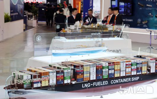 [부산=뉴시스] 하경민 기자 = '2025 국제조선 및 해양산업전'이 열린 21일 부산 해운대구 벡스코 제1전시장에서 관람객들이 한화오션 부스에 전시된 다양한 선박의 모형을 둘러보고 있다. 2025.10.21. yulnetphoto@newsis.com |
