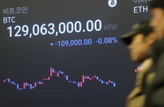 서울 강남구 업비트 라운지 전광판에 비트코인을 비롯한 주요 가상자산 시세가 표시되고 있다. [연합] |