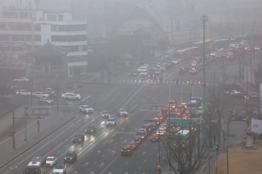 16일 서울 종로구 경복궁 교차로 인근이 초미세먼지와 짙은 안개로 뿌옇게 보이고 있다. 2026.1.16 뉴스1 |