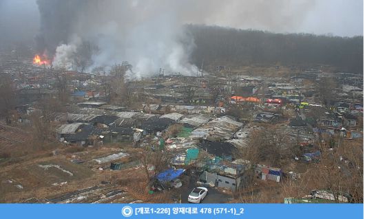 서울 구룡마을 주택화재가 산불로 확산되고 있다. [산림청 제공] |