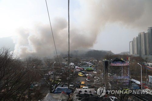 (서울=연합뉴스) 김성민 기자 = 16일 서울 강남구 개포동 구룡마을 4지구 화재현장에 연기가 치솟고 있다. 소방당국은 대응 1단계를 2단계로 격상하고 추가 인력을 투입 중이다. 2026.1.16