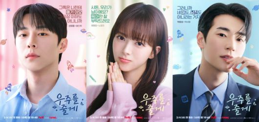 tvN 새 수목드라마 '우주를 줄게'(극본 수진·신이현, 연출 이현석·정여진) 제작진은 16일 선태형(배인혁 분) 우현진(노정의 분) 박윤성(박서함 분)의 캐릭터 포스터를 공개했다. 사진에는 캐릭터를 설명하는 각자의 문구가 더해져 궁금증을 자극한다.