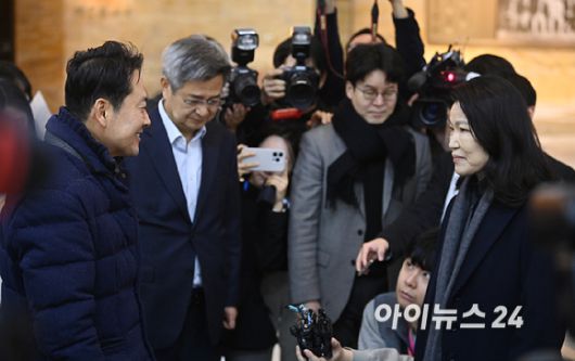 [아이뉴스24 곽영래 기자]통일교 및 공천뇌물 특검 수용 촉구 단식 농성 중인 장동혁 국민의힘 대표가 16일 서울 여의도 국회 로텐더홀에서 이진숙 전 방송통신위원장과 대화를 나누고 있다.