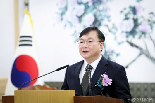 박영재 신임 법원행정처장이 16일 오전 서울 서초구 대법원 본관에서 가진 취임식에서 취임사를 하고 있다./사진=머니투데이 DB |