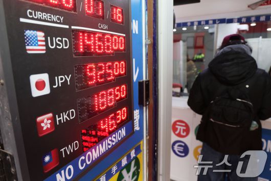 (서울=뉴스1) 이광호 기자 = 16일 서울 중구 명동 환전소 전광판에 환율 시세가 나오고 있다. 이날 서울 외환시장에서 원·달러 환율은 미국 고용지표 호조에 따른 달러 강세 영향으로 다시 1,470원 위로 상승했다. 2026.1.16/뉴스1