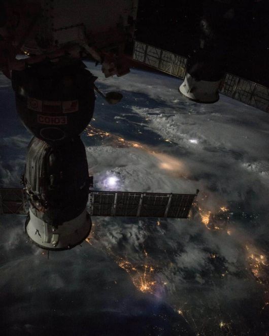 사진에는 "저 밝은 흰색 불빛들은 도시의 불빛이 아니라, 뇌우 시스템 안에서 번쩍이는 거대한 번개다. 이런 각도에서 보기 전까지는 우리가 살아 숨 쉬는 지구에 살고 있다는 사실을 잊기 쉽다. 폭풍 아래에 있든 위에 있든, 그 광경은 정말 장관이다"라는 글이 덧붙여졌다.