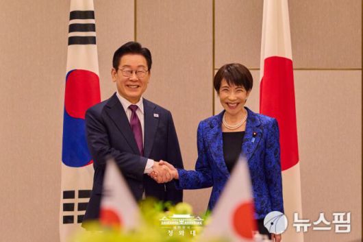 이재명 대통령과 다카이치 사나에 일본 총리가 13일 확대 정상회담에서 악수하고 있다. [사진=청와대] |