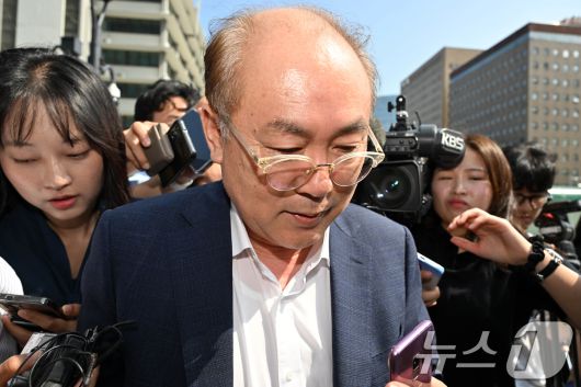 정창래 전 삼부토건 대표가 9일 오전 서울 종로구 KT광화문빌딩에 마련된 김건희 특검에서 삼부토건 주가 조작 사건과 관련한 피의자 조사를 받기 위해 출석하고 있다. (공동취재) 2025.7.9/뉴스1 ⓒ News1 오대일 기자 |