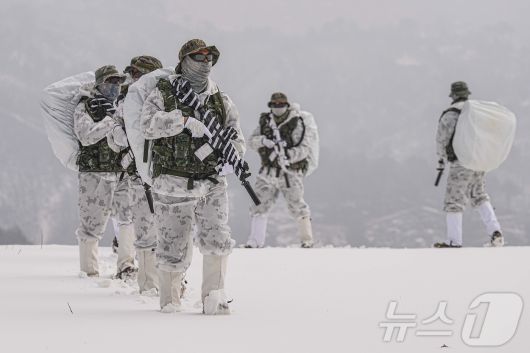 (서울=뉴스1) 허고운 기자 = 해병대 특수수색여단이 평창 산악종합훈련장을 비롯해 강원·경북·강화 일대에서 동계 작전 수행 능력 향상을 위한 2026년 동계 설한지 훈련을 실시하고 있다고 해병대사령부가 16일 밝혔다.