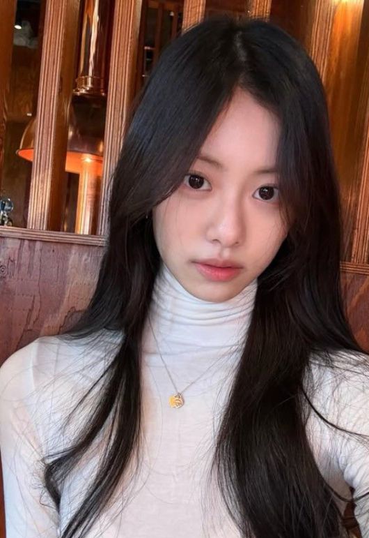 긴 생머리를 늘어뜨린 채 내추럴한 분위기를 연출했으며, 목걸이를 착용한 모습도 담겼다.