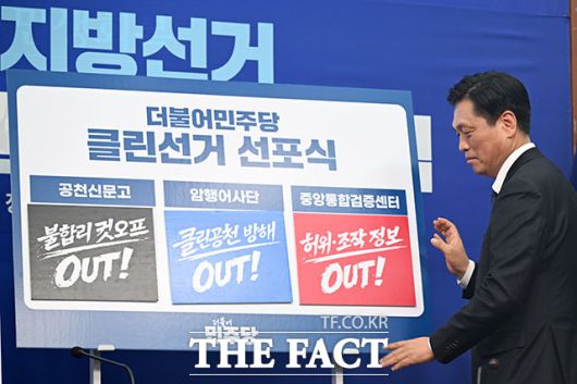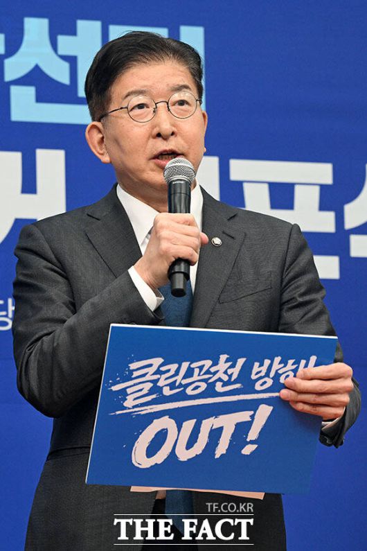 '클린선거 선포식' 열고 발언하는 정청래 대표. |